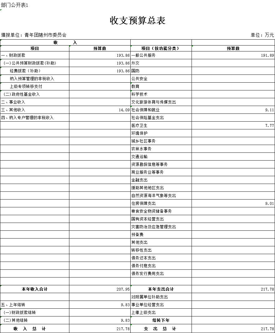 共青團(tuán)隨州市委2020年部門預(yù)算
