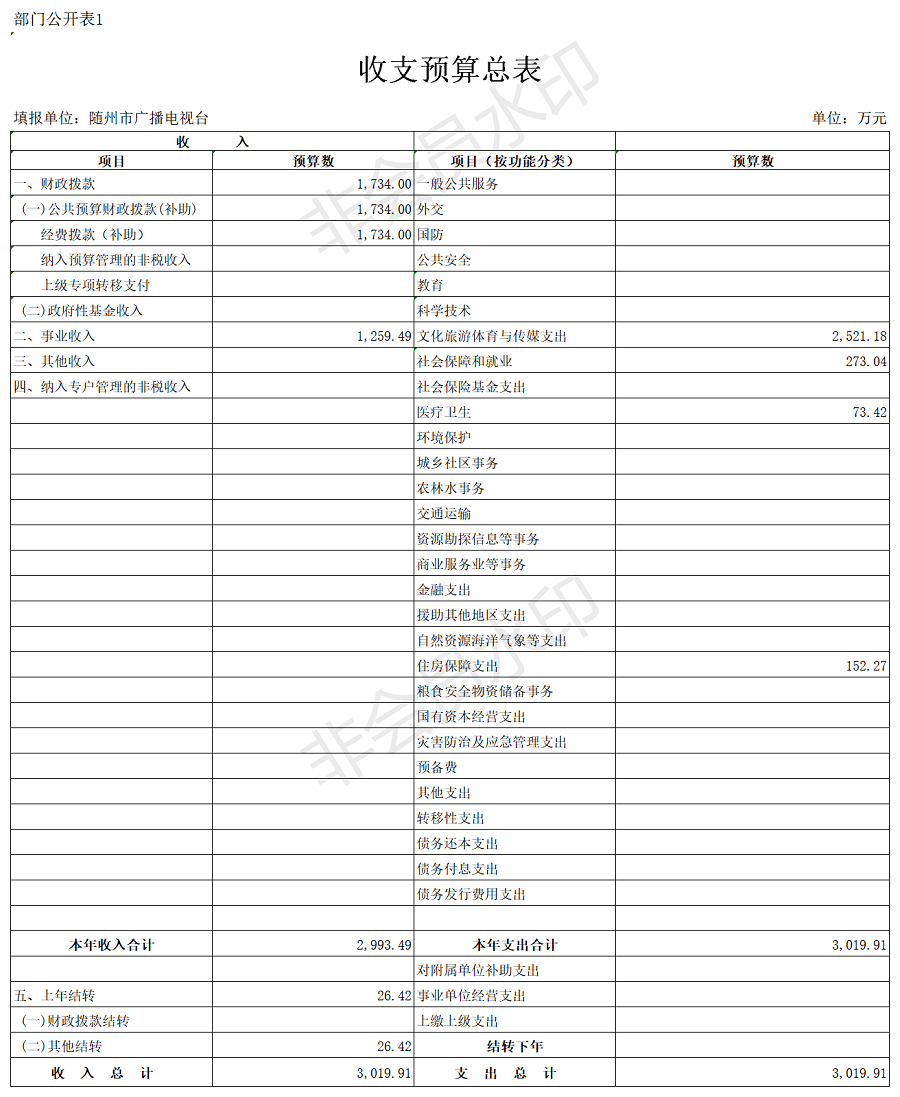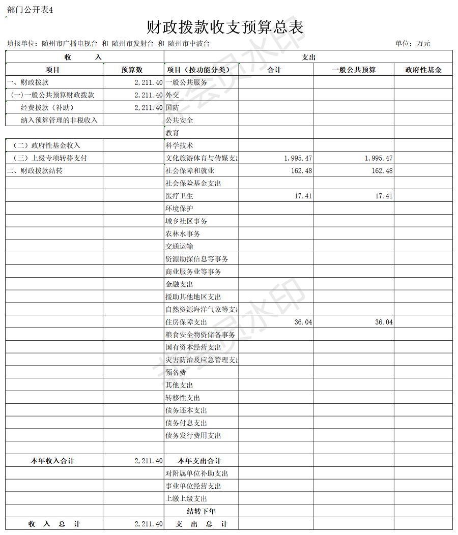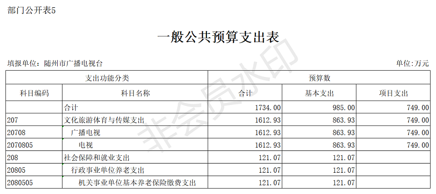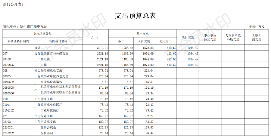 隨州廣播電視臺2020年部門預算