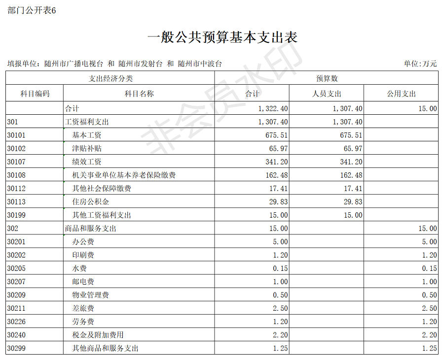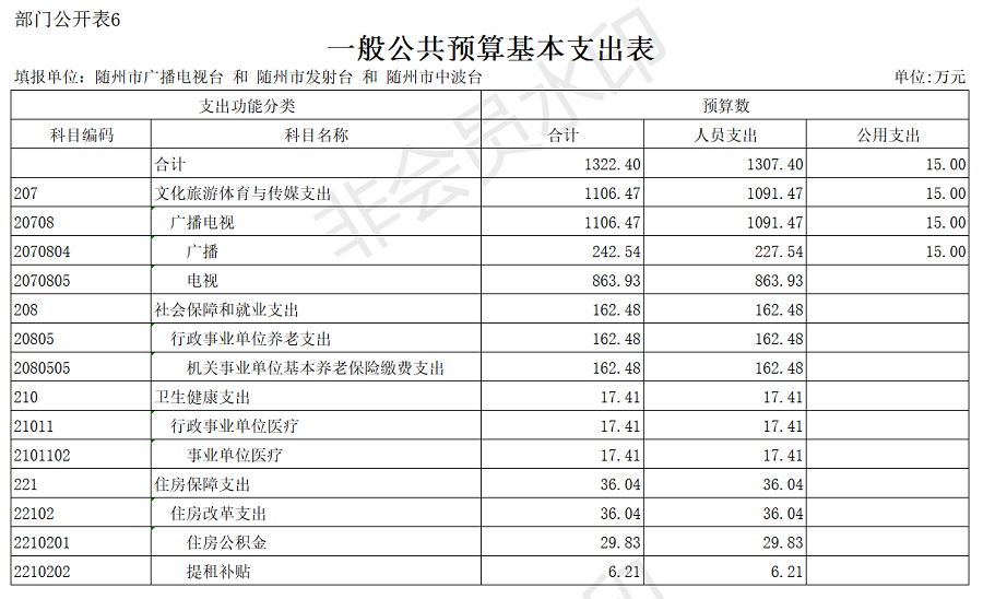 第三部分 隨州廣播電視臺2020年部門預算表