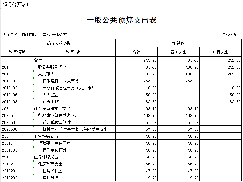 住房公積金(2210201):反映市人大機關公積金經費支出。