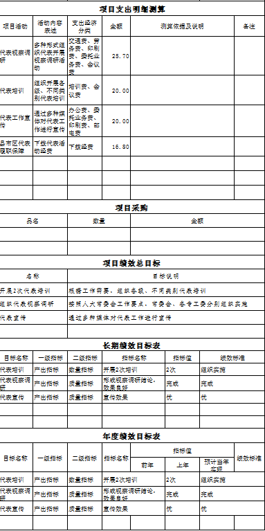 代表工作(2010108):反映人大代表開展各類視察等方面的支出。