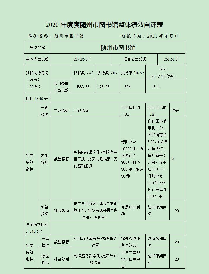 附件:2020年度隨州市圖書館整體績效自評表(附后)