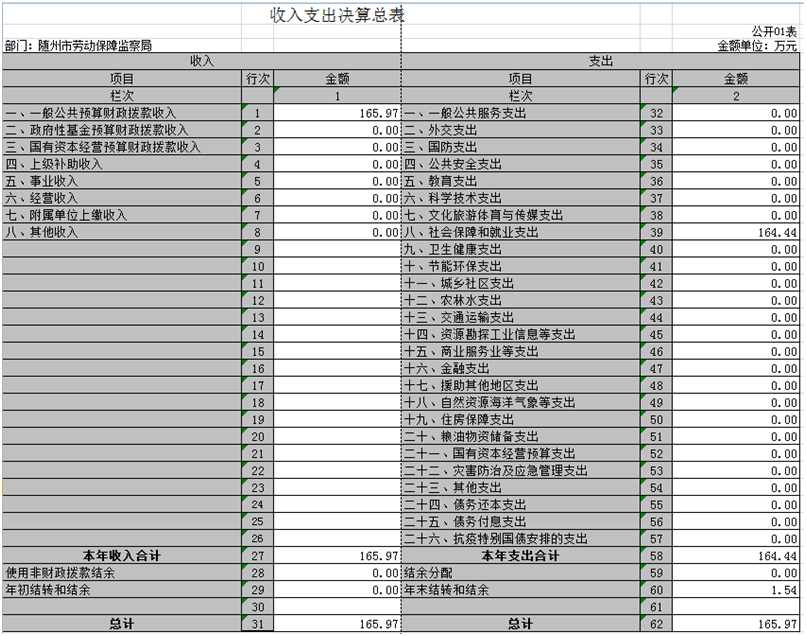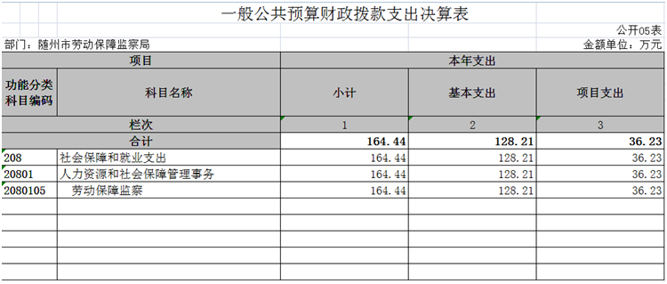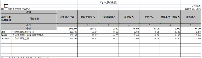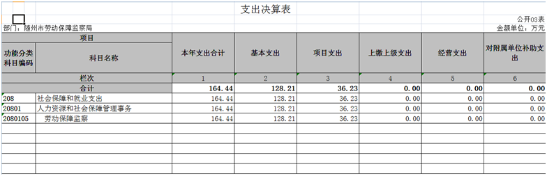 第三部分 隨州市勞動保障監察局2020年部門決算表