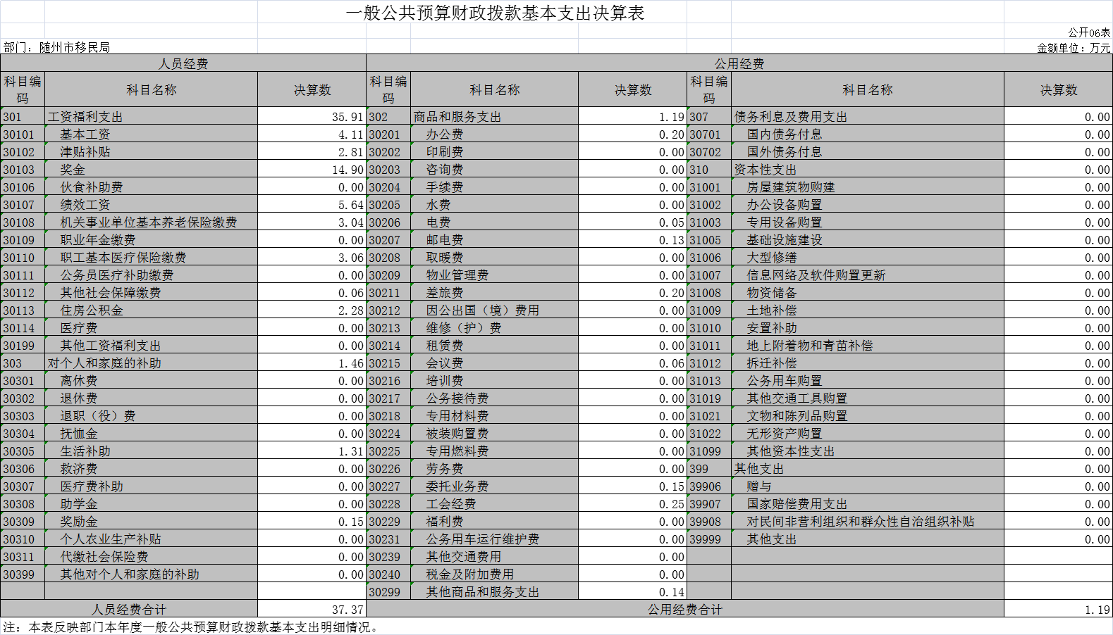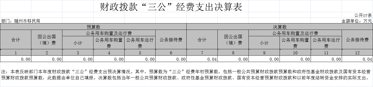 隨州市移民服務中心(原隨州市移民局)2020年部門決算公開
