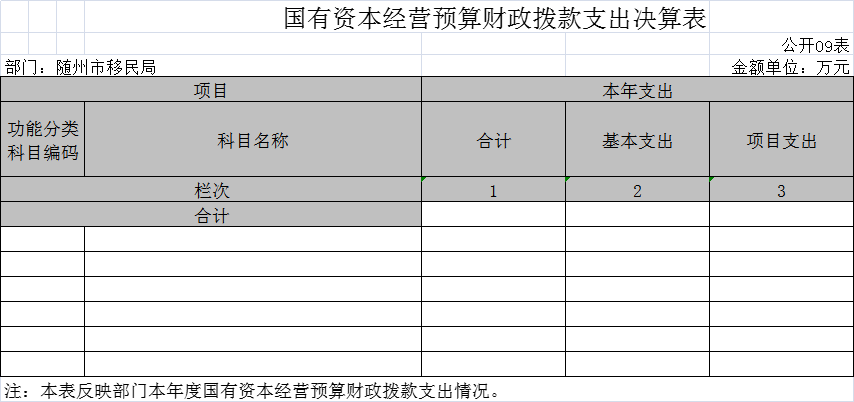 九、國有資本經營預算財政撥款收入支出決算表
