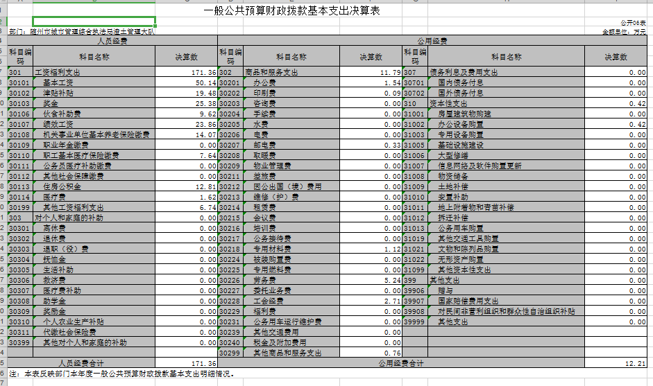六、一般公共預(yù)算財(cái)政撥款基本支出決算表(公開(kāi)表06表)