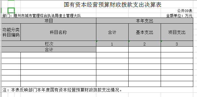 九、國(guó)有資本經(jīng)營(yíng)預(yù)算財(cái)政撥款收入支出決算表(公開(kāi)表09表)