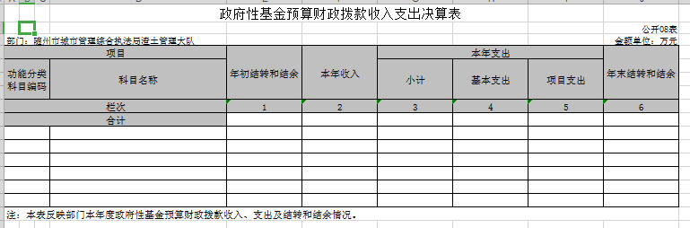 八、政府性基金預(yù)算財(cái)政撥款收入支出決算表(公開(kāi)表08表)