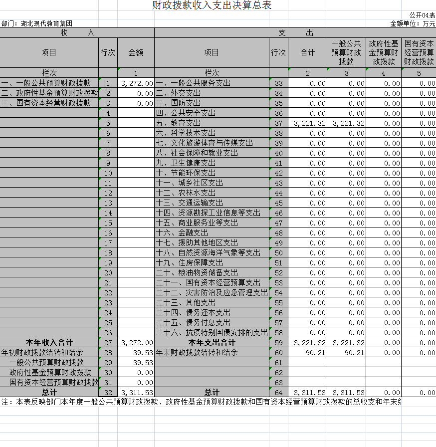 四、財(cái)政撥款收入支出決算總表(公開表04表)