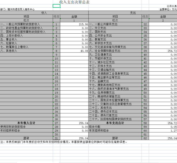 隨州市退役軍人服務中心2020年度決算公開說明