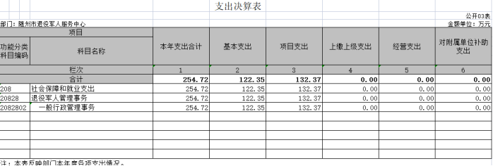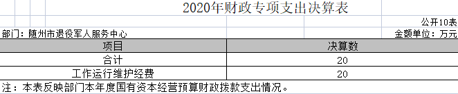 第三部分 ?隨州市退役軍人服務中心2020年部門決算表