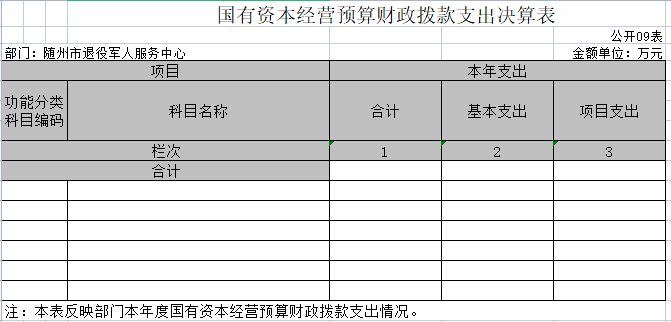 九、國有資本經營預算財政撥款支出決算表
