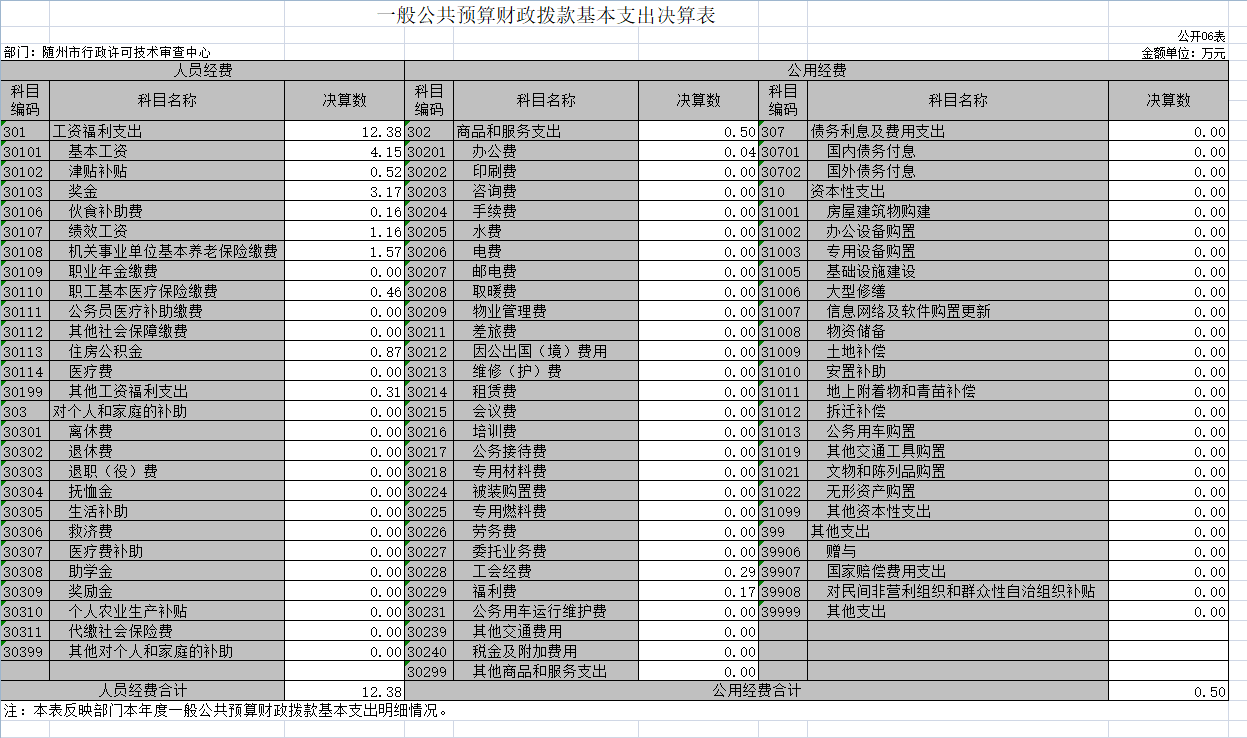 隨州市行政許可技術(shù)審查中心2020年決算