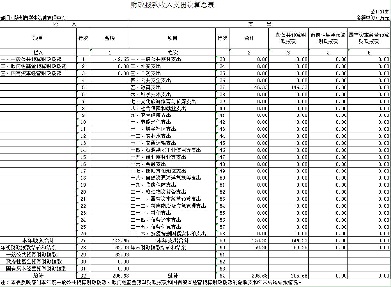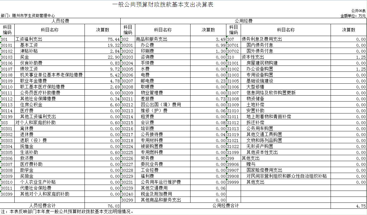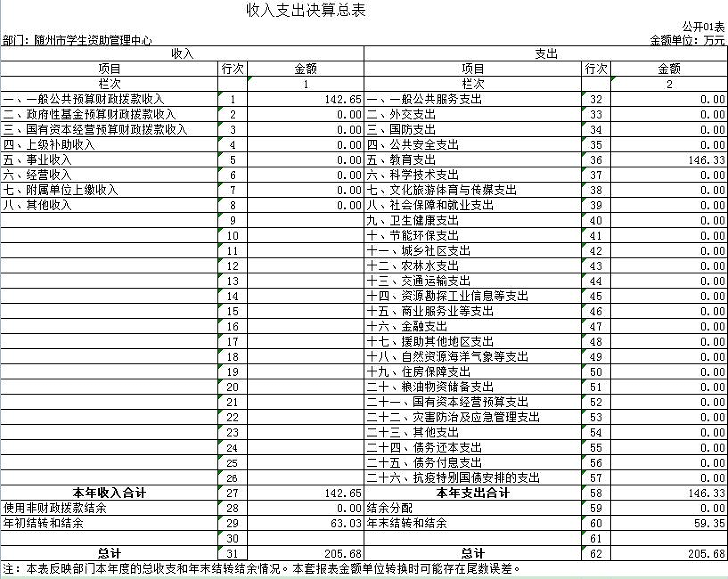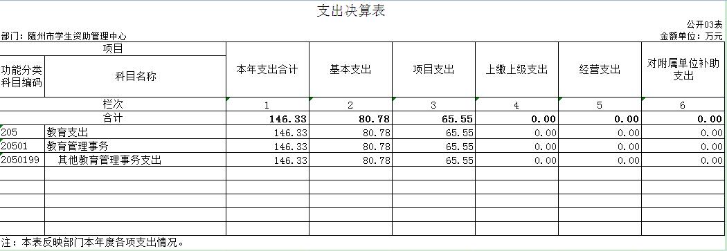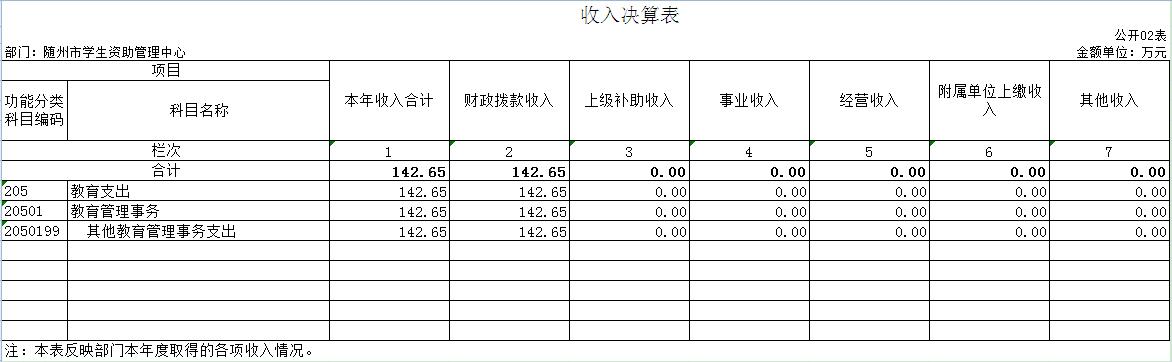 第三部分 隨州市學生資助管理中心2020年部門決算表