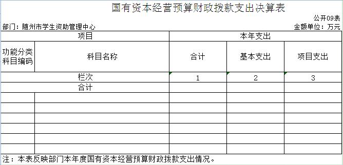9、國有資本經營預算財政撥款支出決算表