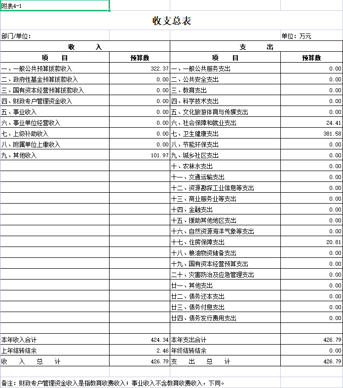 公開表4:財政預算撥款收支預算總表