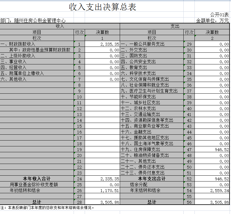 2015年決算收入合計3505.86萬元,其中:本年收入合計2335.35萬元,年初結轉和結余1170.51萬元;2015年決算支出合計3505.86萬元,其中:本年支出合計946.52萬元,年末結轉和結余2559.34萬元。