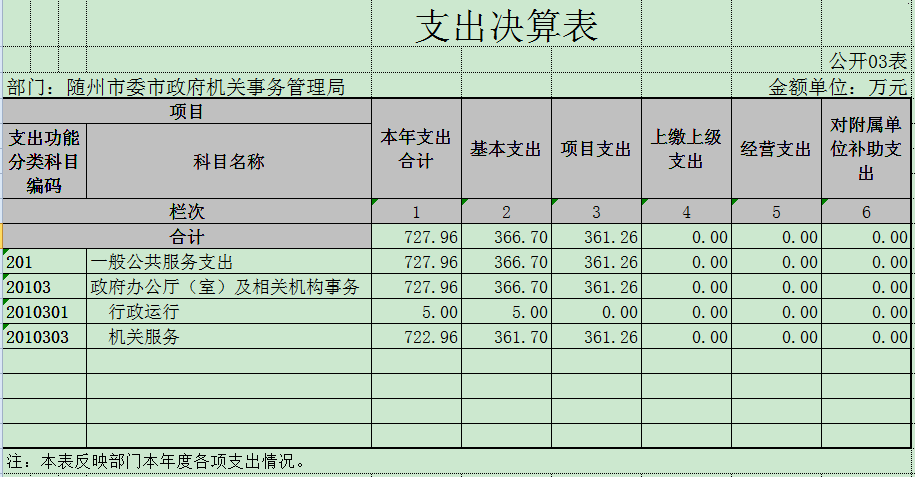 本年度收入720.40萬元,其中財政撥款672.10萬元(基本支出撥款310.80萬元,項目支出撥款361.30萬元),其他收入48.30萬元(光伏發電電費和光伏發電補貼24萬元,收會議中心會議費7萬元,政法委裝修會議室款15萬元,其他2.3萬元)。本年度支出728萬元,其中基本支出366.7萬元(人員經費287.70萬元,日常公用經費79萬元),項目支出361.30萬元(市委市政府后勤服務維修)。上年結轉57.80萬元,本年度結轉50.20萬元。