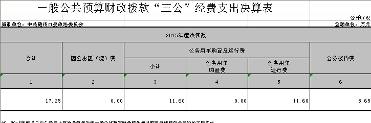 三公經(jīng)費(fèi)增減變化說明:2015年我單位無公費(fèi)出國人員,國內(nèi)公務(wù)接待公務(wù)25批次180人,接待費(fèi)同比下降約40%,公務(wù)車運(yùn)行維護(hù)費(fèi)與上年度持平。