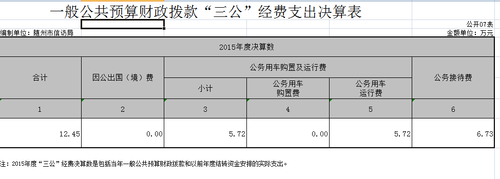 2014年市信訪局“三公”經費總支出458746.6元,其中公務用車購置費140900元(接訪勸返應急用車),運行維護費111095.06元,公務接待費155851元,因公出國經費50900元(1人次)。2015年市信訪局“三公”經費總支出124447.18元,其中公務用車運行維護費57173.18元,公務接待費67274元,共接待40批次,437人次。無車輛購置和因公出國經費。2015年度三公經費較2014年度降低70%。