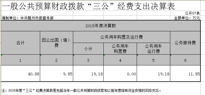 ??“三公”經費總支出40.88萬元,比上年下降7%。其中: