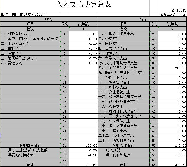 財政撥款收入決算總額284.61萬元(包含上年結轉94.58萬元),支出決算總額249.23萬元,結轉結余35.37萬元。