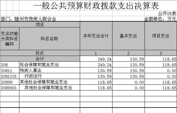 3、項目支出(2089901項):指在基本支出之外為完成特定行政任務和事業發展目標所發生的支出,包括殘疾人康復、宣傳文體、教育就業、維權信訪、組織聯絡等項目所產生的支出。