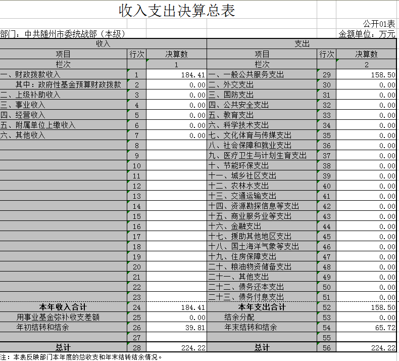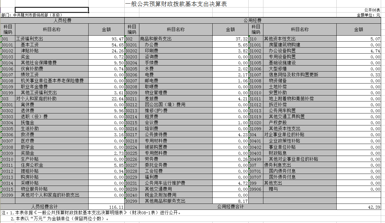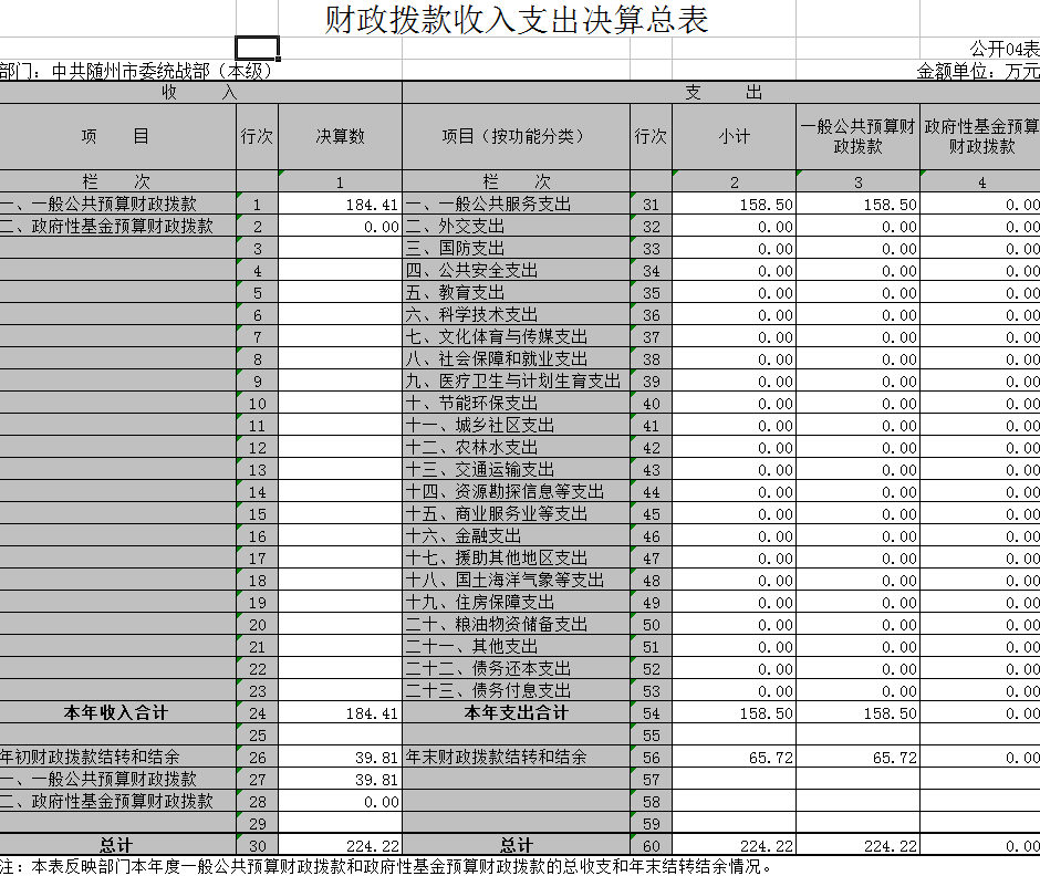 2016年決算收入合計224.22萬元,其中財政撥款收入184.41萬元,上年結轉和結余39.81萬元。決算支出合計158.5萬元。其中人員經費支出116.11萬元,日常公用經費支出42.39萬元。2016年我部無政府采購支出。我部為黨群部門,2016年無政府性基金預算收支。2016年我部未購置公車,車改后保留1臺公車。