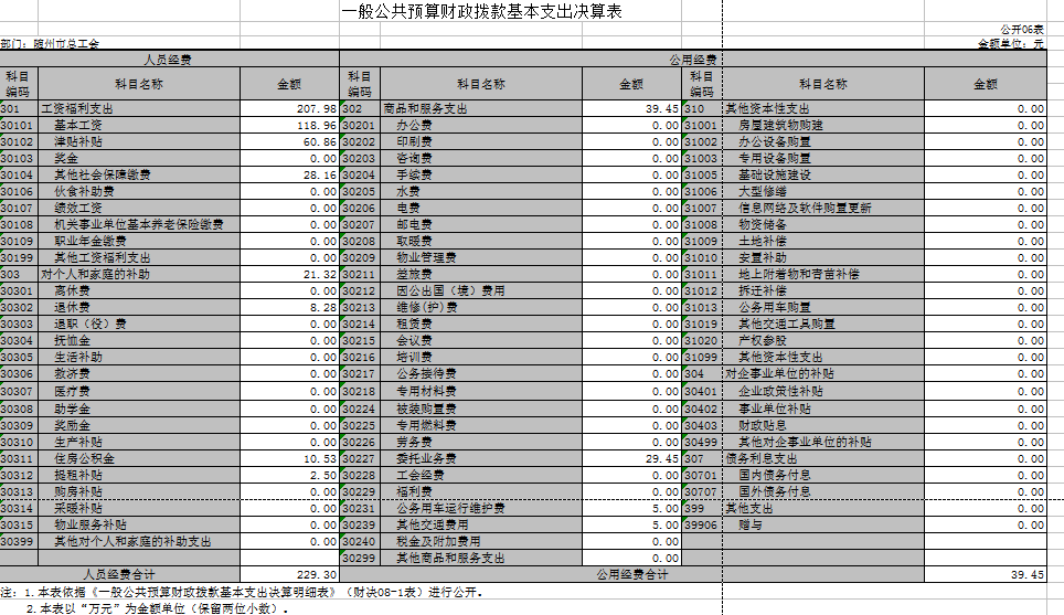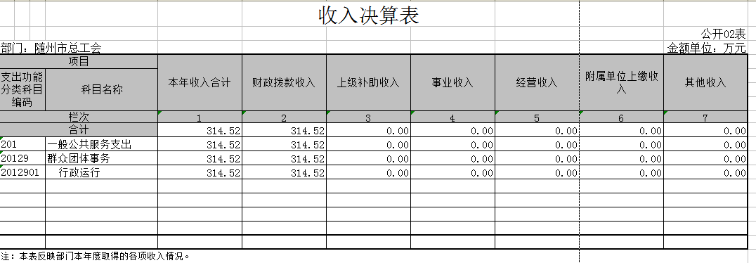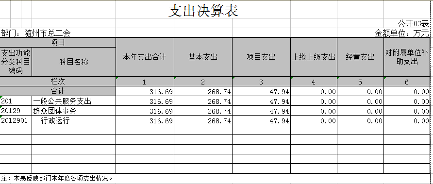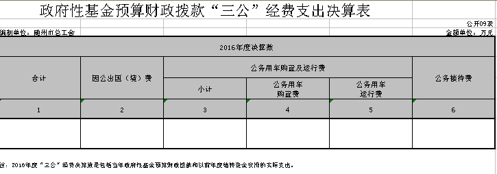 隨州市總工會2016年無政府性基金預算收支,08表、09表為空表。