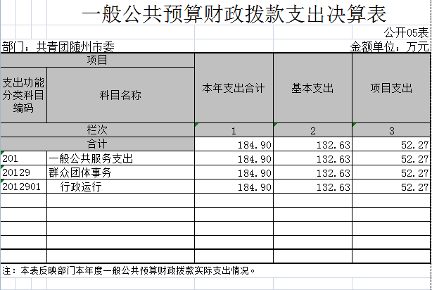 2016年團市委收入預算總額為224.63萬元,均為財政撥款(補助)收入。支出總額為184.9萬元,其中:基本支出132.63萬元,項目支出52.27萬元。
