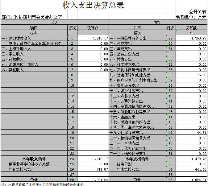 市政協辦公室2016年財政撥款支出總計1479.78萬元,一般公共服務支出年初預算數為1395.89萬元,決算數為1358.79萬元,完成年初預算的97.34%;社會保障和就業支出年初預算數為187.71萬元,決算數為76.38萬元,完成年初預算的40.69%;住房保障支出年初預算數為46.49萬元,決算數為44.61萬元,完成年初預算的95.96%。