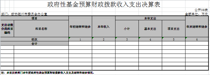 6、年初結轉和結余:指以前年度尚未完成、結轉到本年 按有關規定繼續使用的資金。