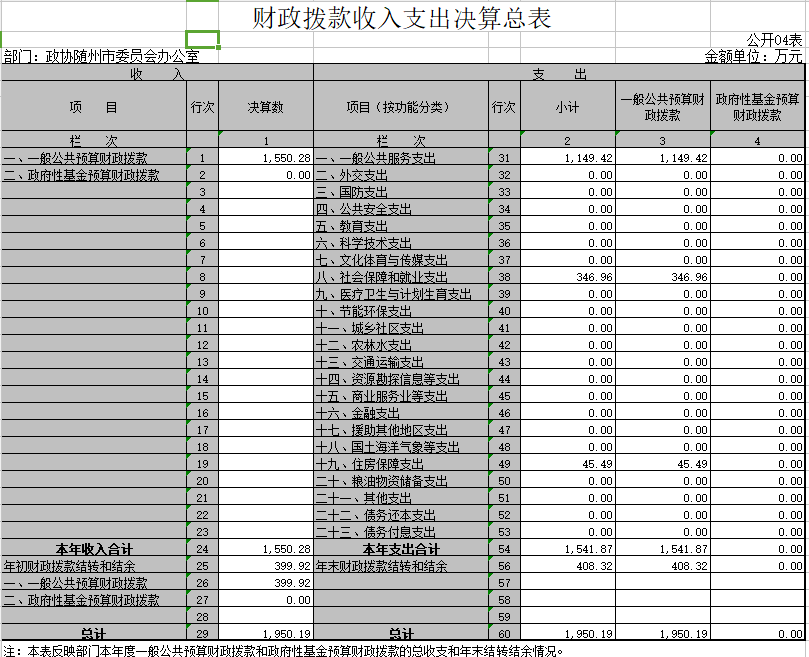 8、年末結轉和結余:指本年度或以前年度預算安排、因客觀條件發生變化無法按原計劃實施,需要延遲到以后年度按有關規定繼續使用的資金。