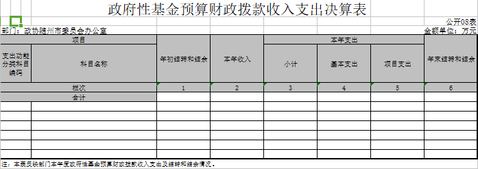 6、年初結轉和結余:指以前年度尚未完成、結轉到本年 按有關規定繼續使用的資金。