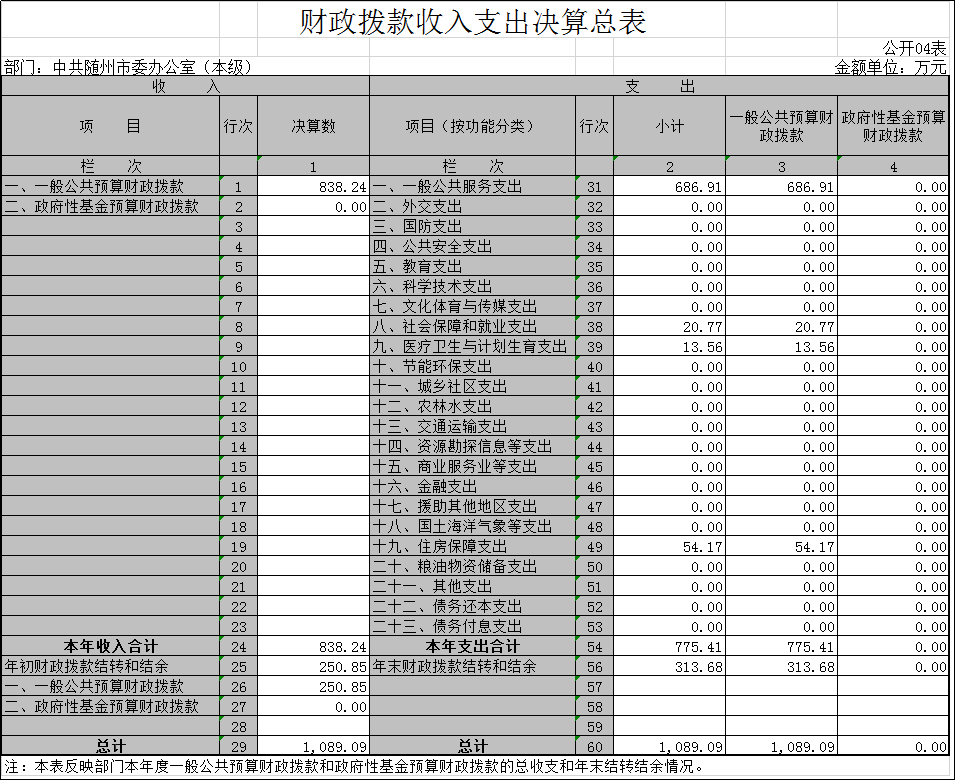 4、財政撥款收入支出決算總表