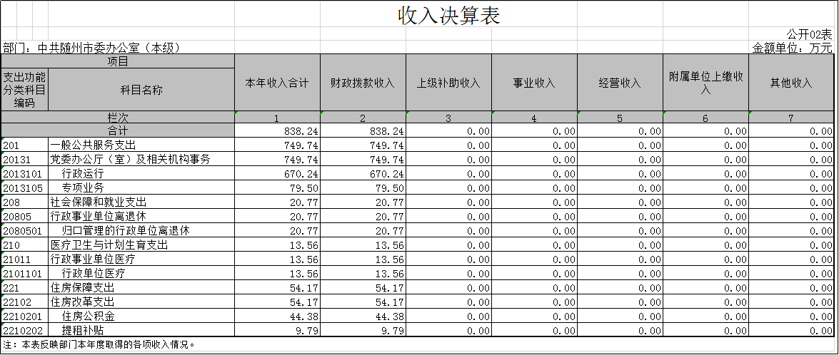 中共隨州市委辦公室2017年度部門決算