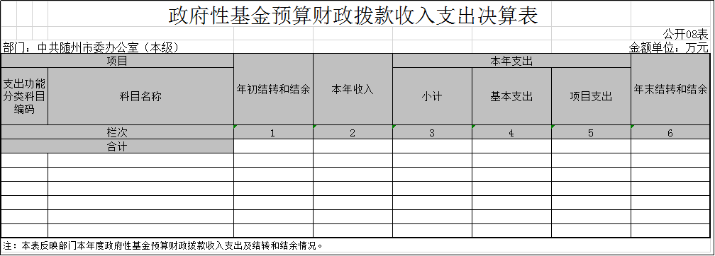 8、政府性基金預算財政撥款收入支出決算表