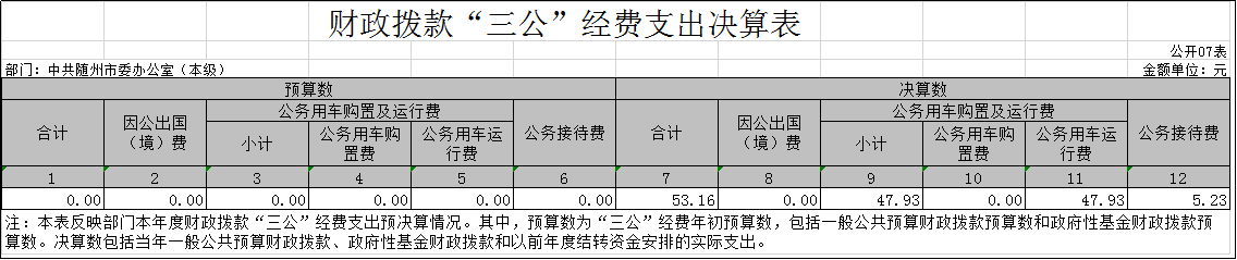 7、財政撥款“三公”經費支出決算表