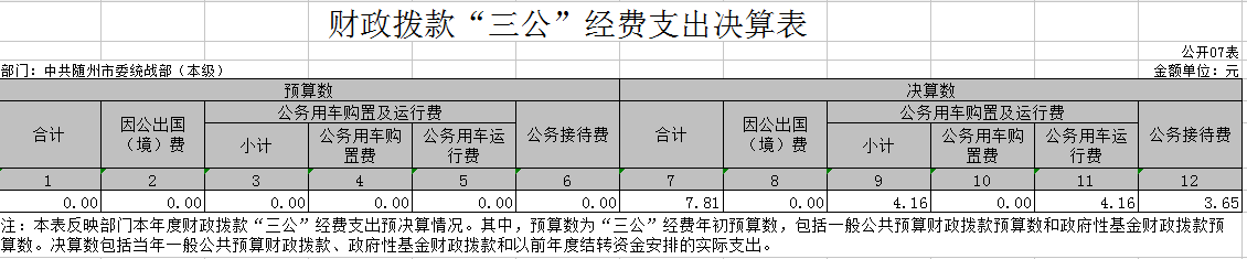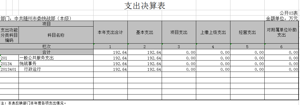 中共隨州市委統一戰線工作部2017年度部門決算公開