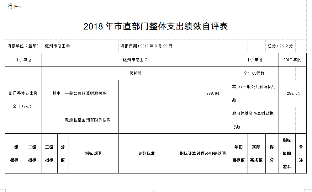 ??第四部隨州市總工會2018年整體支出績效自評報告