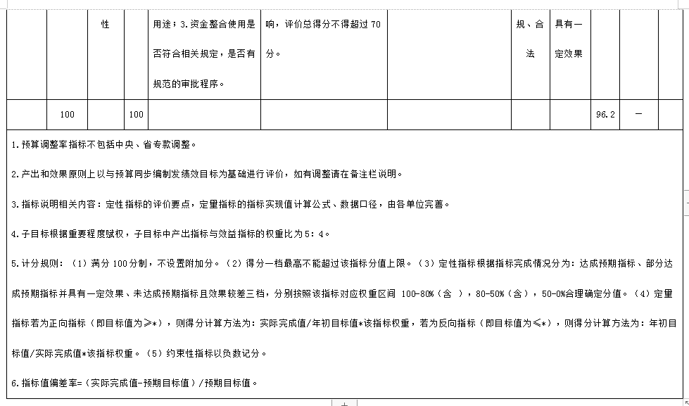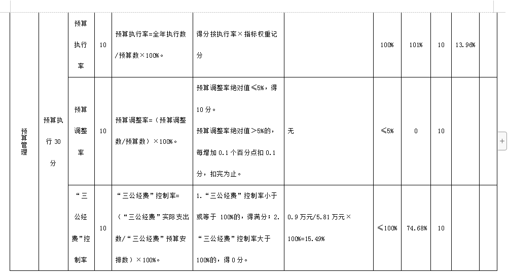 經費的支出是否能夠保障部門正常運行的有效性,政府和上級主管單位對部門工作情況的評價等三方面進行考核評分,除經濟性扣3.8分外,