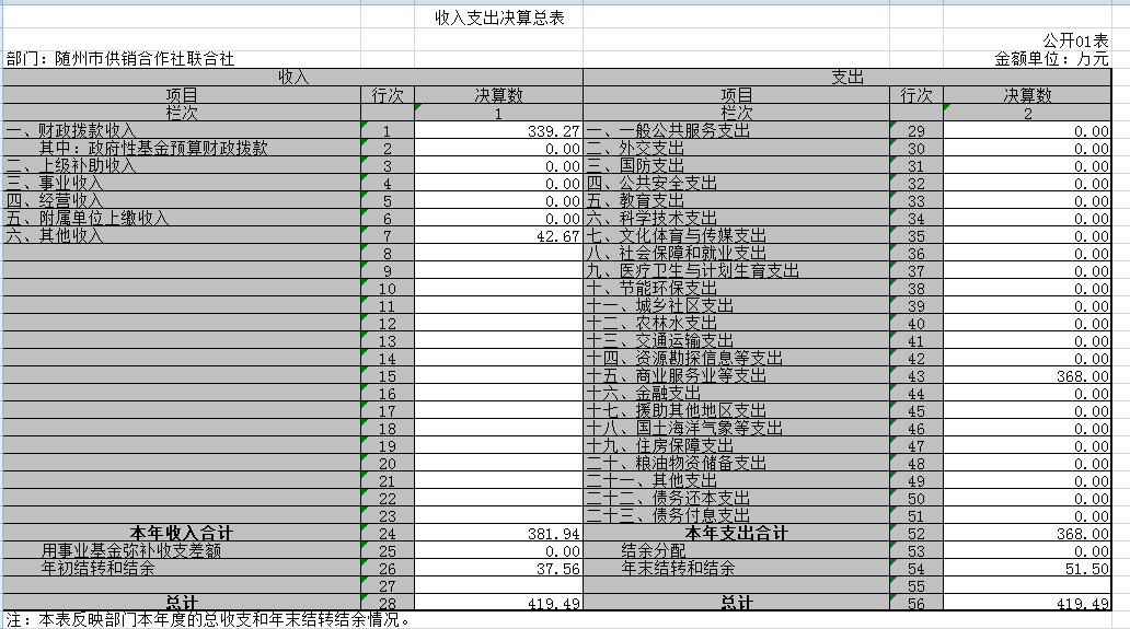 單位無政府性基金財政撥款收入和支出,故政府性基金預算財政撥款收入支出決算表(公開8表)無數據。