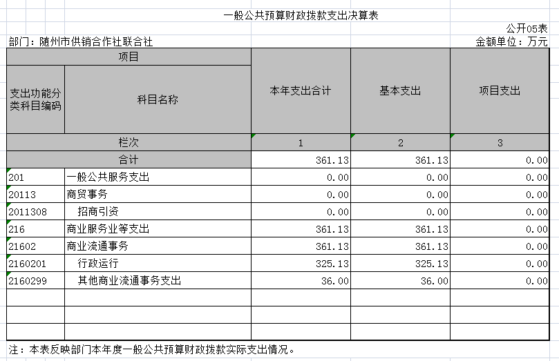 2017年部門支出368萬元,比2016年350.80萬元增加17.2萬元,增加的主要因素是人員工資增加調整;比年初預算365.3 萬元增加2.7萬元。增加的主要因素是人員工資調整追加預算撥款收入;其中:基本支出338萬元,用于單位正常運轉的支出;項目支出30萬元,用于新農村現代流通網絡建設工程等項目經費的支出。