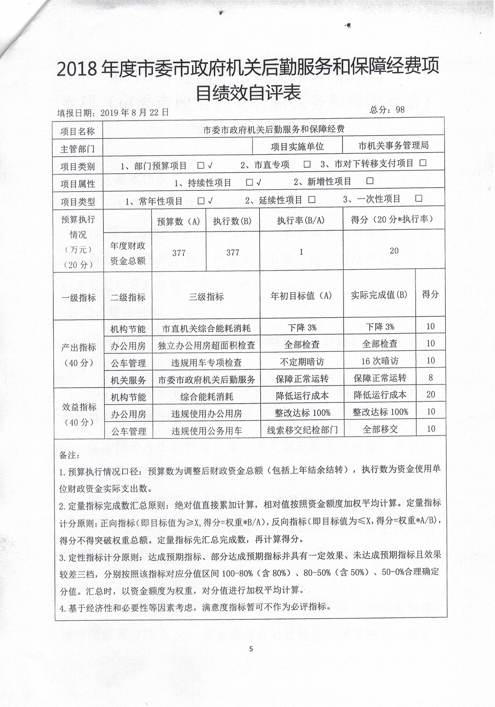 五、2018年度市委市政府機關后勤服務和保障專項支出項目自評表
