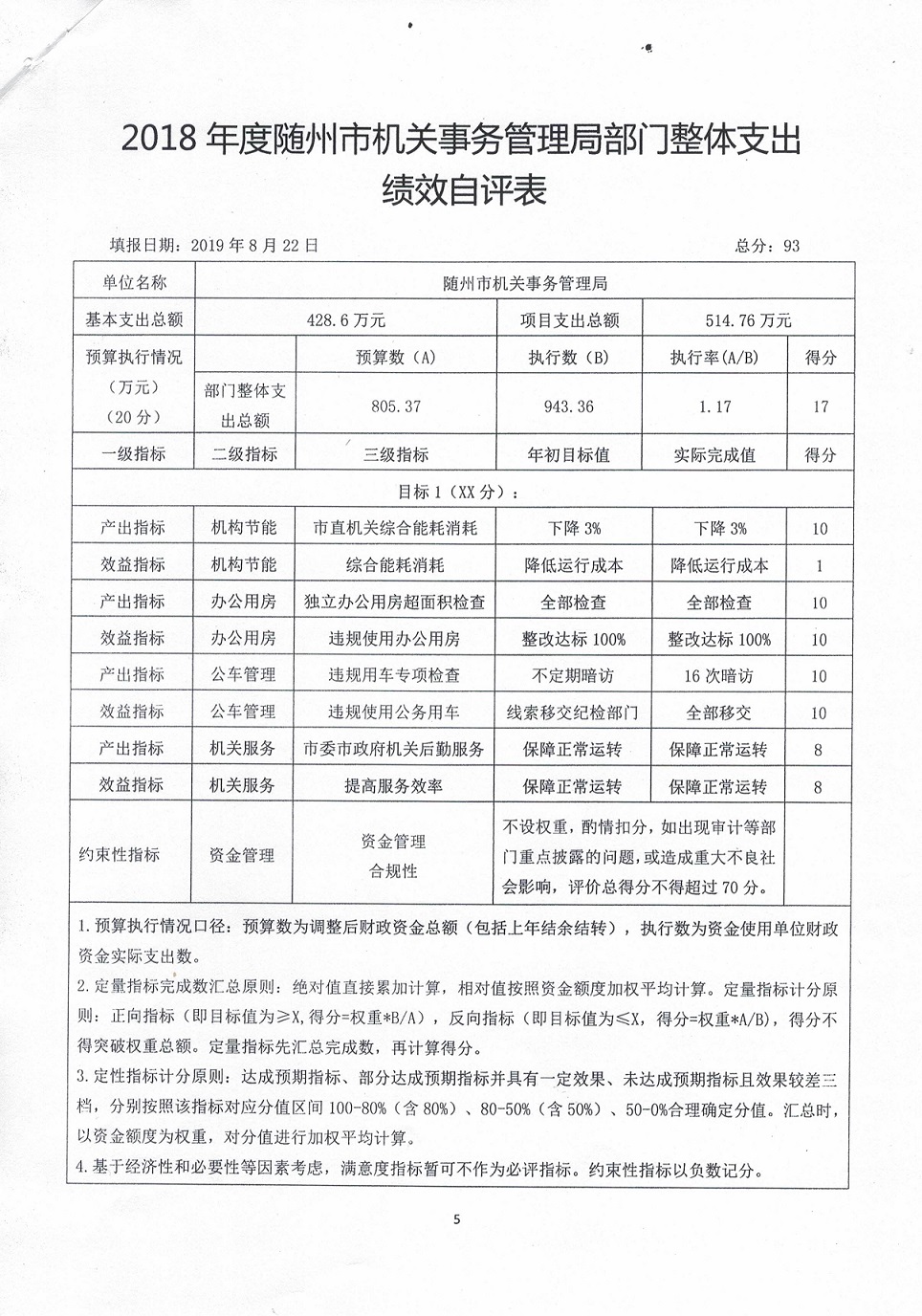五、2018年度市機關事務管理局整體支出績效自評表