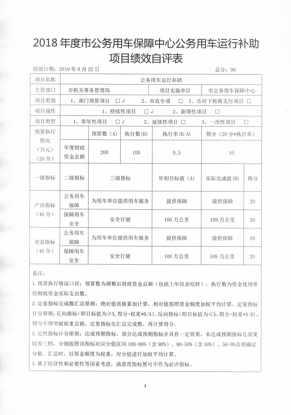 五、2018年度市公務用車保障中心(公務用車運行補助)項目績效自評表