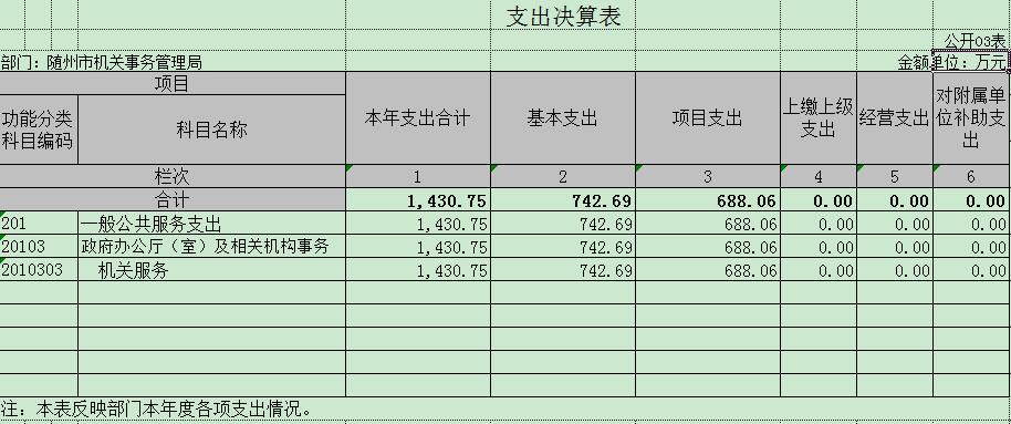 1、部門支出情況