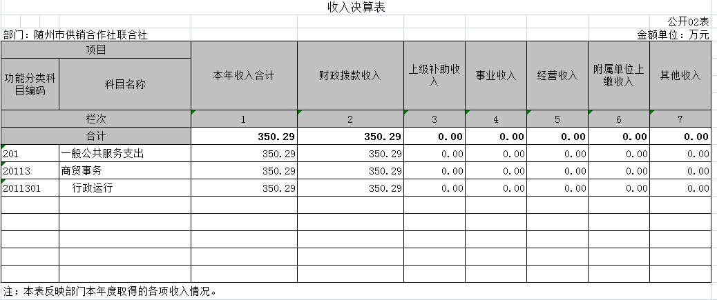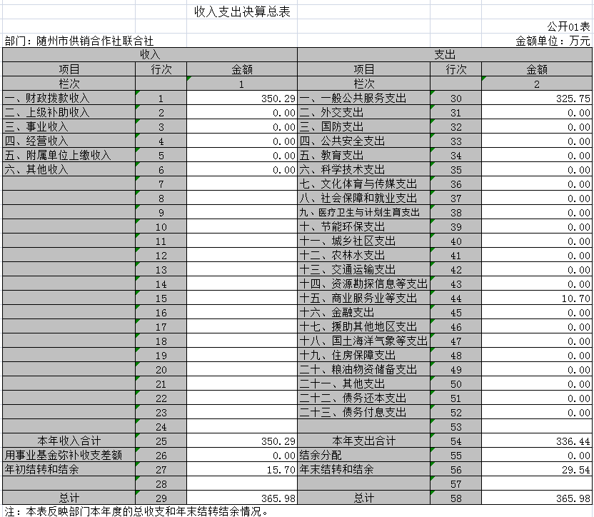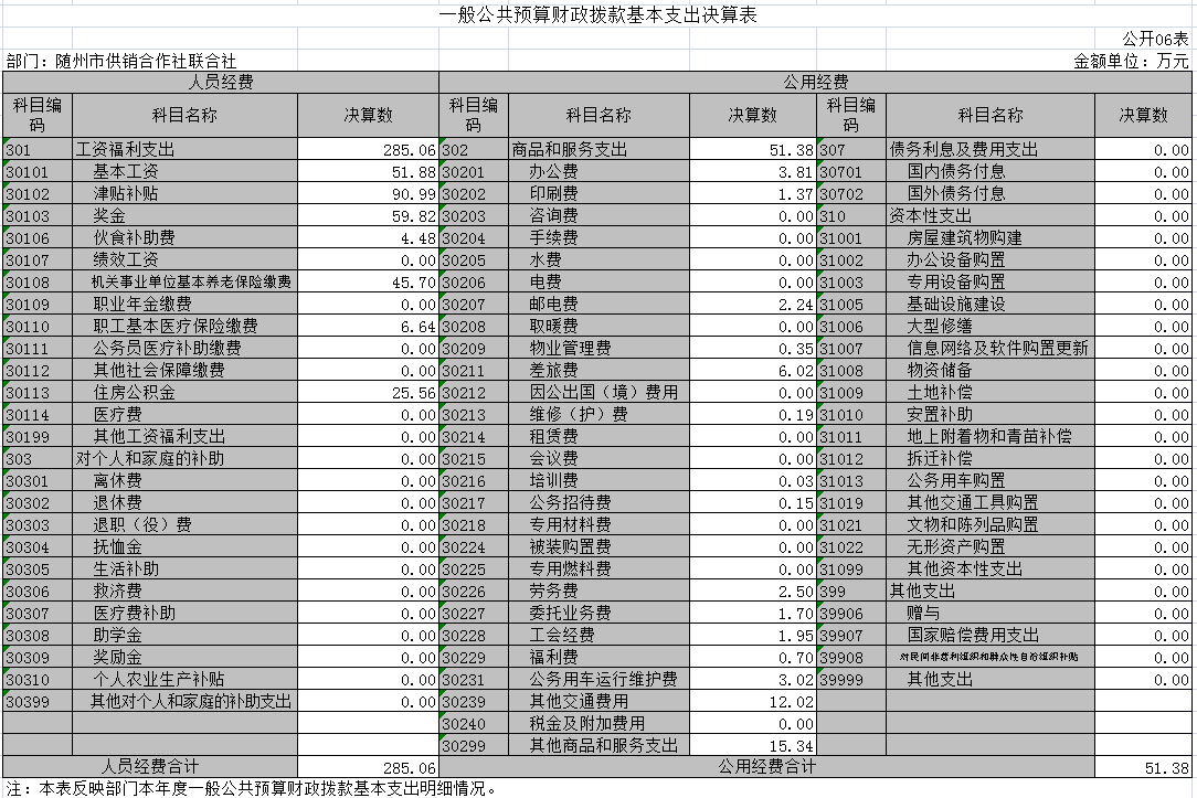 市供銷合作社聯(lián)合社機(jī)關(guān)全額撥款事業(yè)編制為15名。其中:主任1名,副主任2名,監(jiān)事會(huì)主任1名,總會(huì)計(jì)師1名;正科級(jí)領(lǐng)導(dǎo)職數(shù)6名(含監(jiān)事會(huì)辦公室主任1名)。目前在崗在職人員13人,主任1人,副主任2人,監(jiān)事會(huì)主任1人,工會(huì)主席1人,正副科級(jí)7人,科員1 人。 第二部分 2018年部門決算情況說(shuō)明