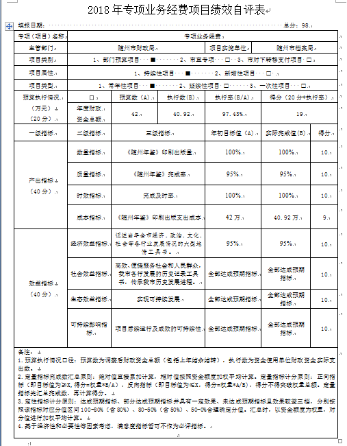 附3、2018年度隨州市檔案局專項業務經費項目支出績效自評表