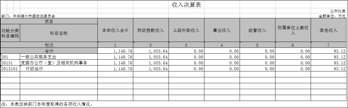 2018年度單位收入1148.76萬元,其中:財政撥款收入1055.64萬元,其他收入93.12萬元。同比2017年增加554.73萬元,增長93.38%,主要原因是:新增政法機關信息化項目建設經費財政撥款。2018年度單位共支出1149.92萬元,其中:基本支出360.70萬元,項目支出789.22萬元。同比2017年增加614.14萬元,增長114.63%;但比年初預算減少251.35萬元,下降17.93%,主要原因是:單位嚴格落實“八項規定”,堅持厲行節約,進一步規范相關經費,特別是規范項目經費的使用管理,不斷提高了經費使用效益。